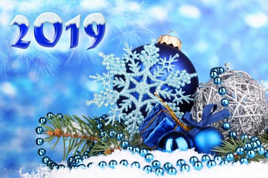 Обои Красивые голубые елочные игрушки на Новый год 2019