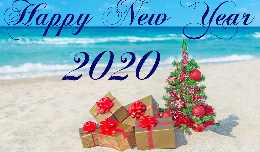 Обои Елка и подарки на песке открытка на Новый год 2020