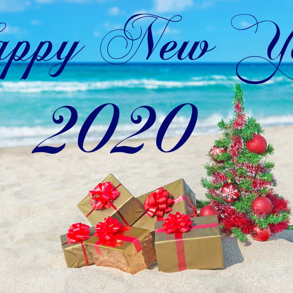 Обои Елка и подарки на песке открытка на Новый год 2020