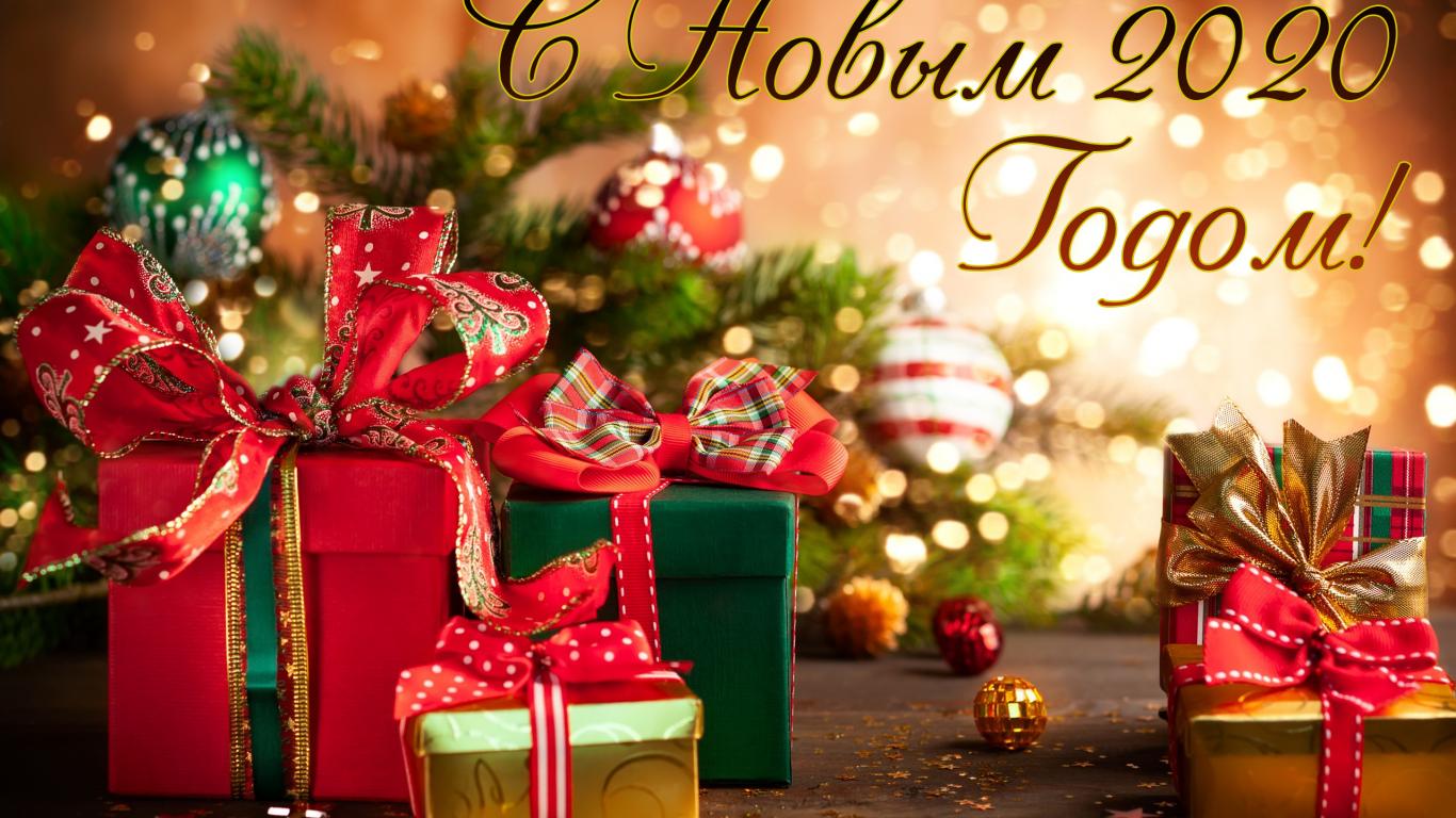 Обои Подарки и елка открытка на Новый год 2020