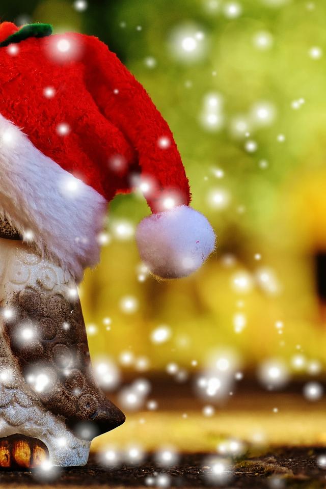 Обои Статуэтка совы в шапке Санта Клауса