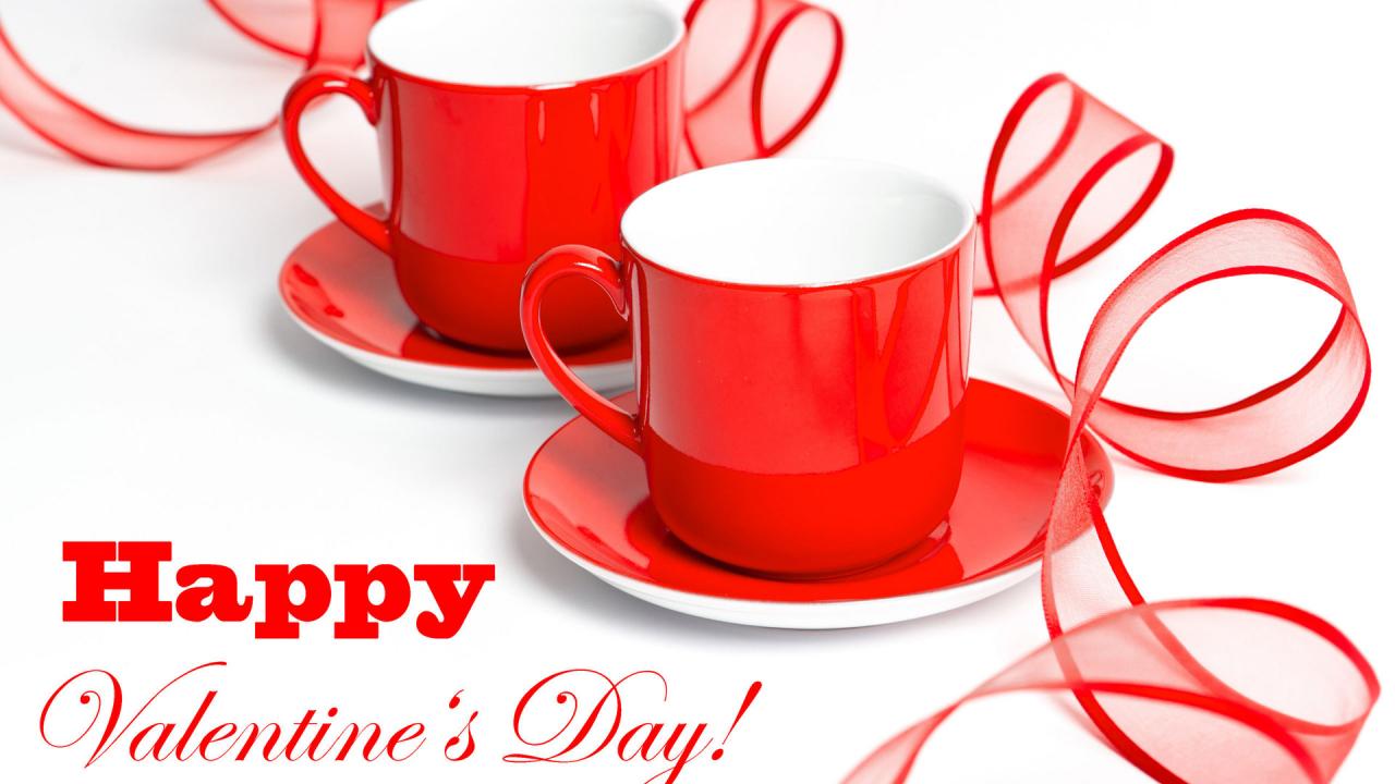 Обои Красные чашки для влюбленных ко Дню Святого Валентина