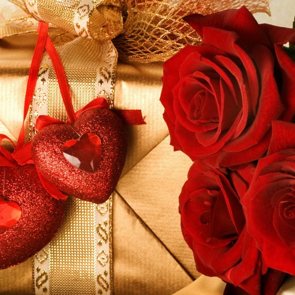 Обои Красные розы и подарок ко Дню Святого Валентина