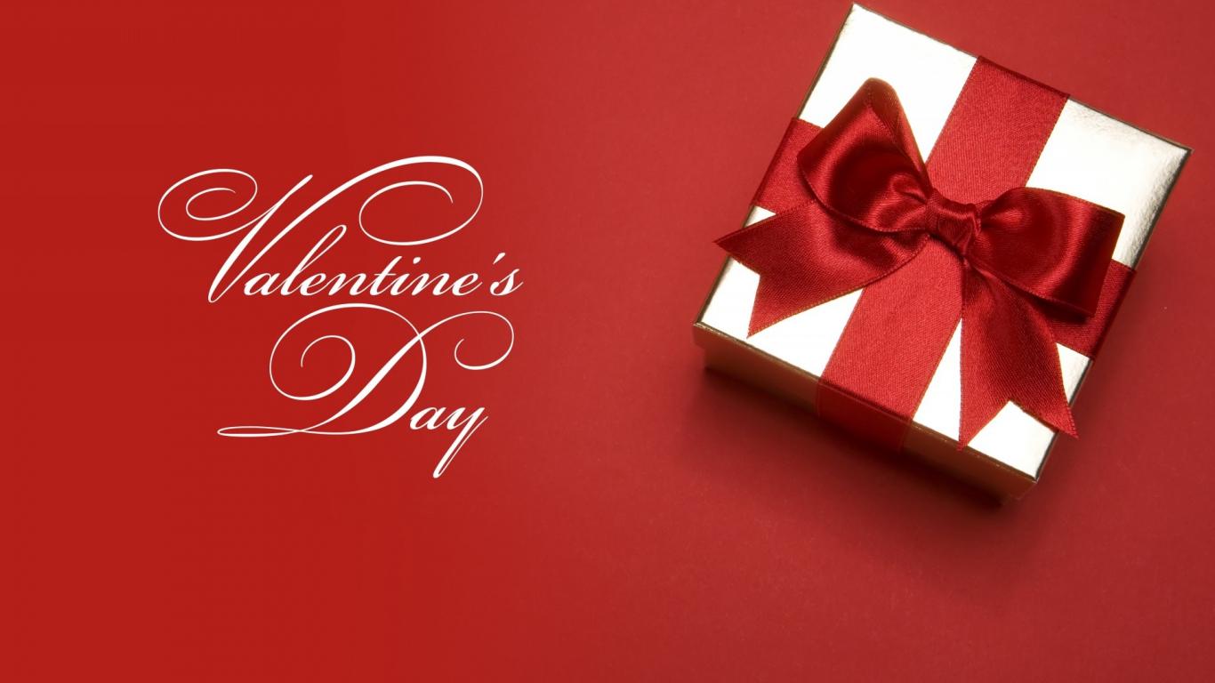 Обои Подарок с красным бантом ко Дню Святого Валентина