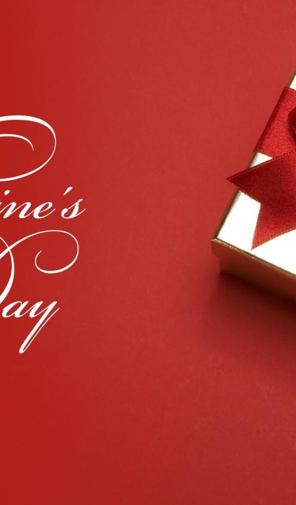 Обои Подарок с красным бантом ко Дню Святого Валентина