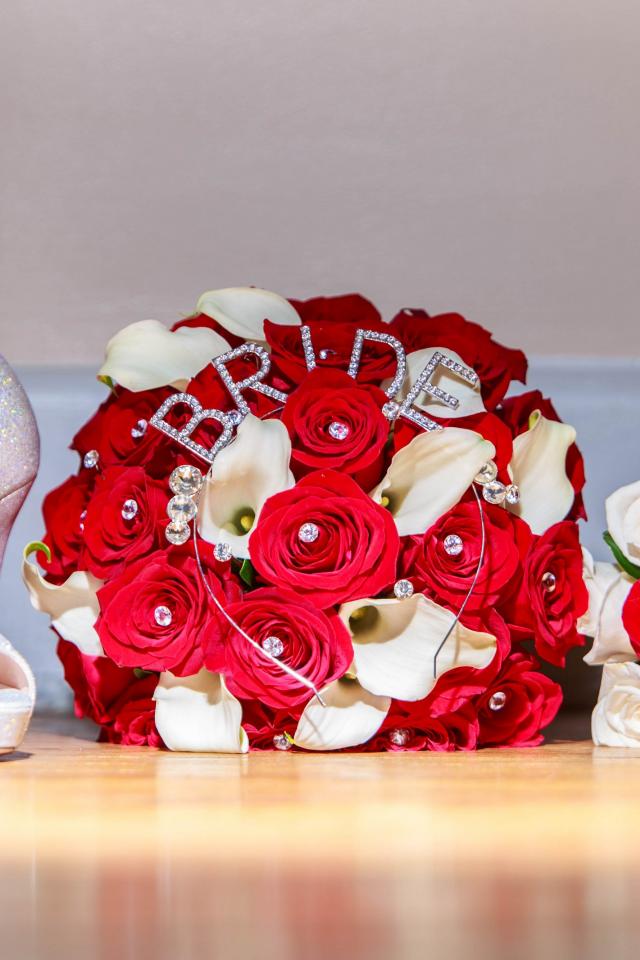 Обои Два свадебных букета с белыми туфлями невесты