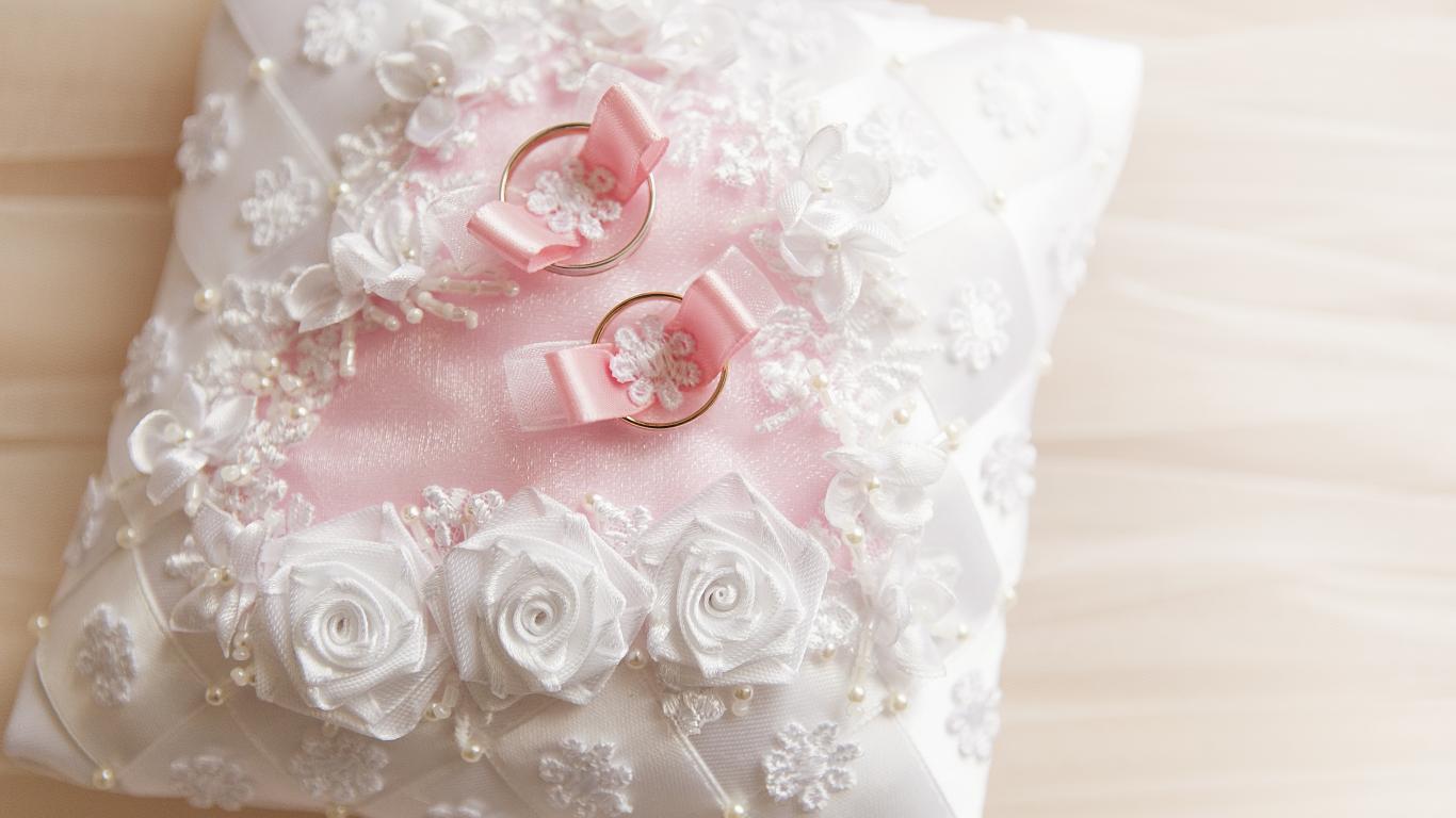 Обои Свадебная подушечка с золотыми обручальными кольцами