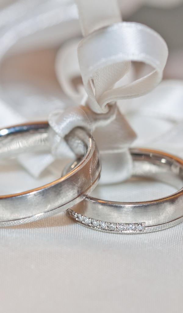 Обои Два обручальных кольца на подушке с ленточкой
