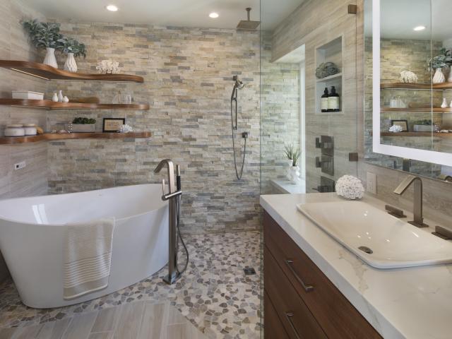 Обои Большая ванная комната с кирпичными стенами