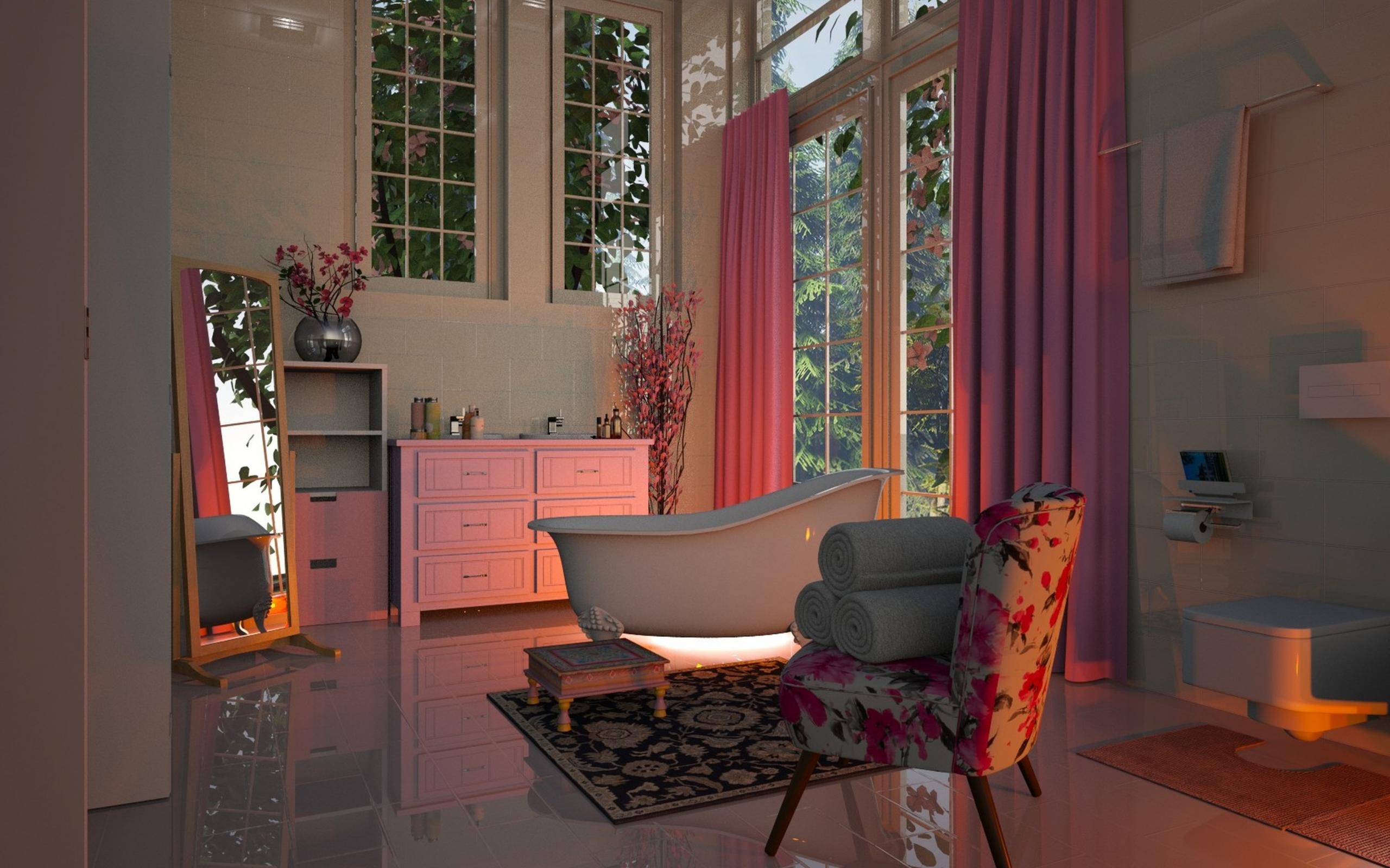 Обои Кресло стоит в ванной комнате с большим окном
