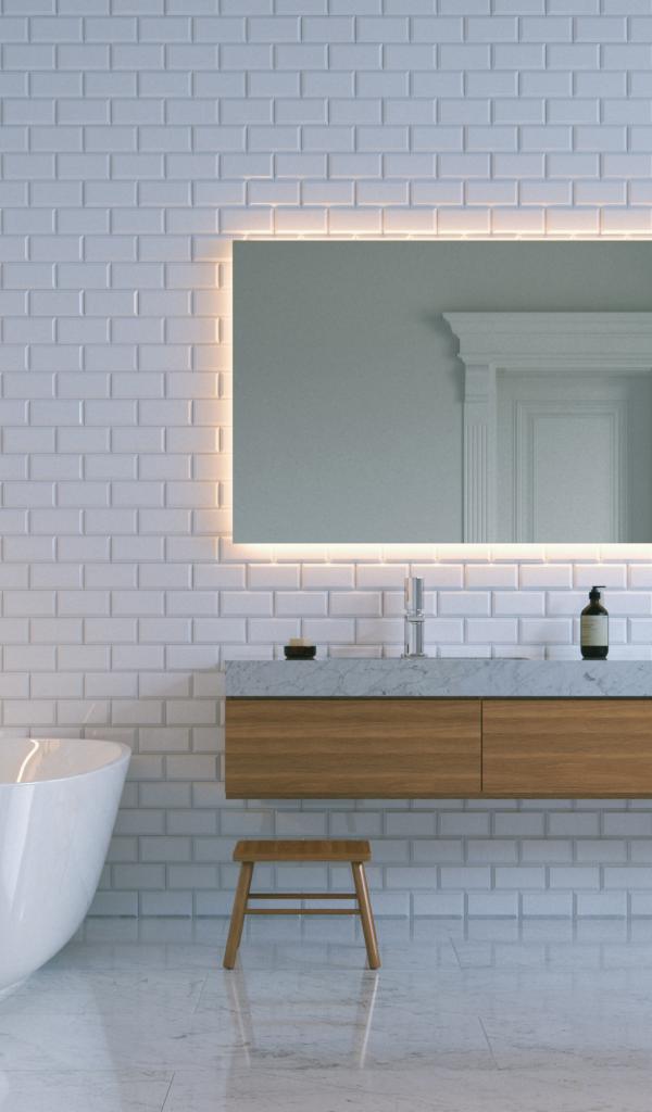 Обои Ванная комната с белыми кирпичными стенами