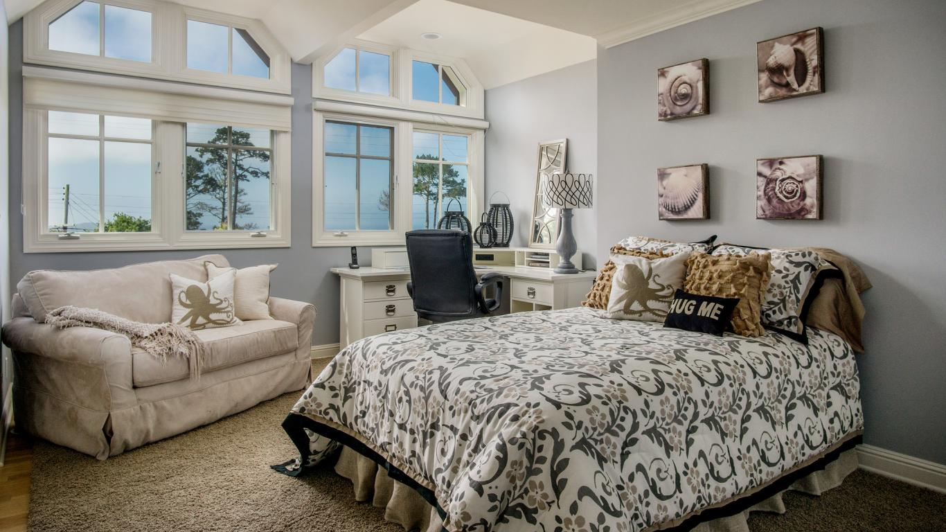 Обои Уютная спальная комната с интерьером на морскую тематику