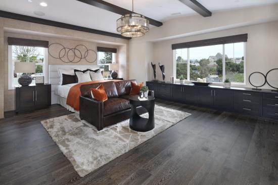 Обои Большая спальная комната с кожаным диваном