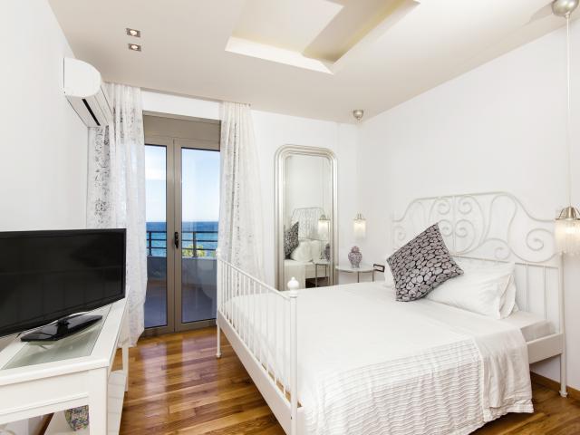 Обои Светлая спальня с большой белой кроватью и телевизором