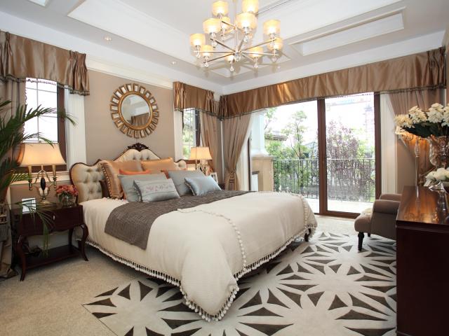 Обои Красивая спальная комната с большой кроватью и балконом
