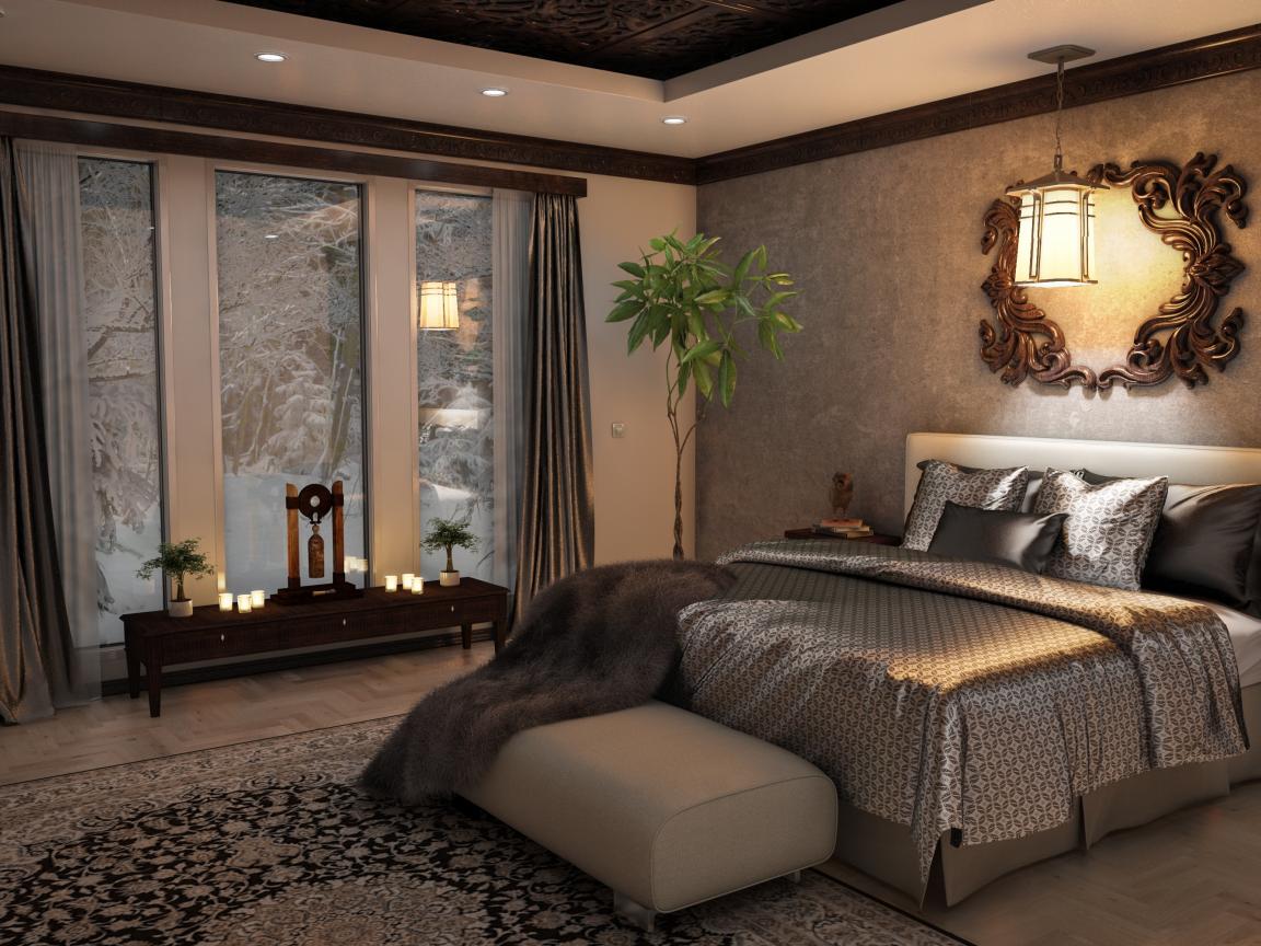 Обои Большая кровать с красивым покрывалом в спальне с большим окном