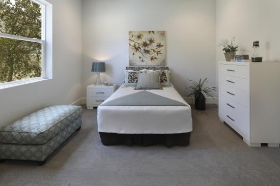 Обои Спальная комната с кроватью и мягкой лежанкой у окна