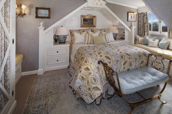 Обои Спальня с большой просторной кроватью и диваном у окна