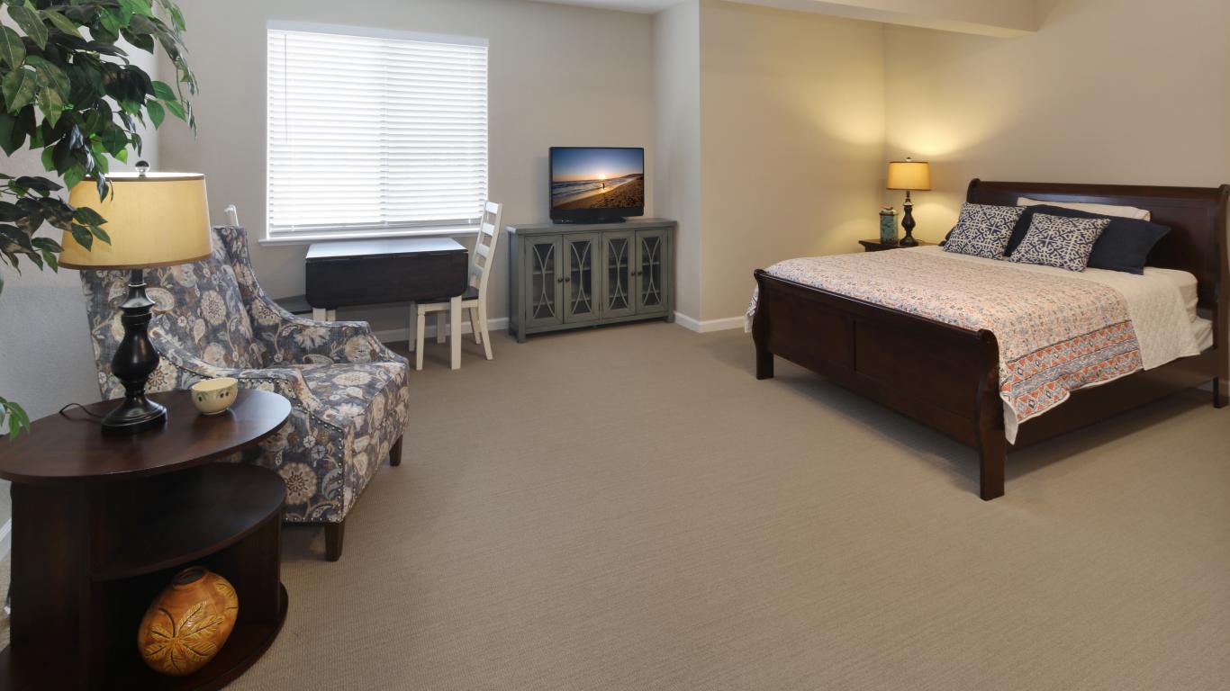 Обои Просторная спальня с большой деревянной кроватью