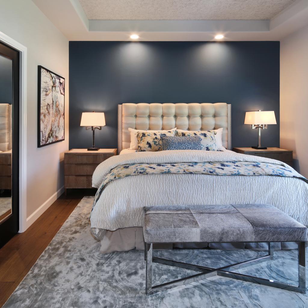 Обои Спальня в серых тонах с большой кроватью