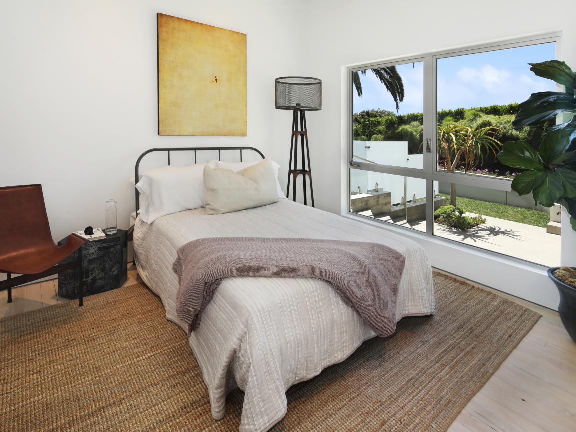 Обои Большая кровать у окна в спальной комнате