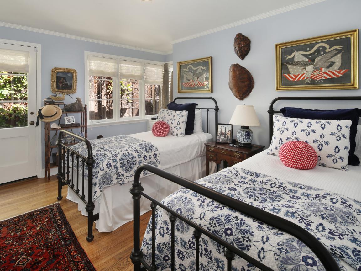 Обои Две большие кровати в спальне с большими окнами