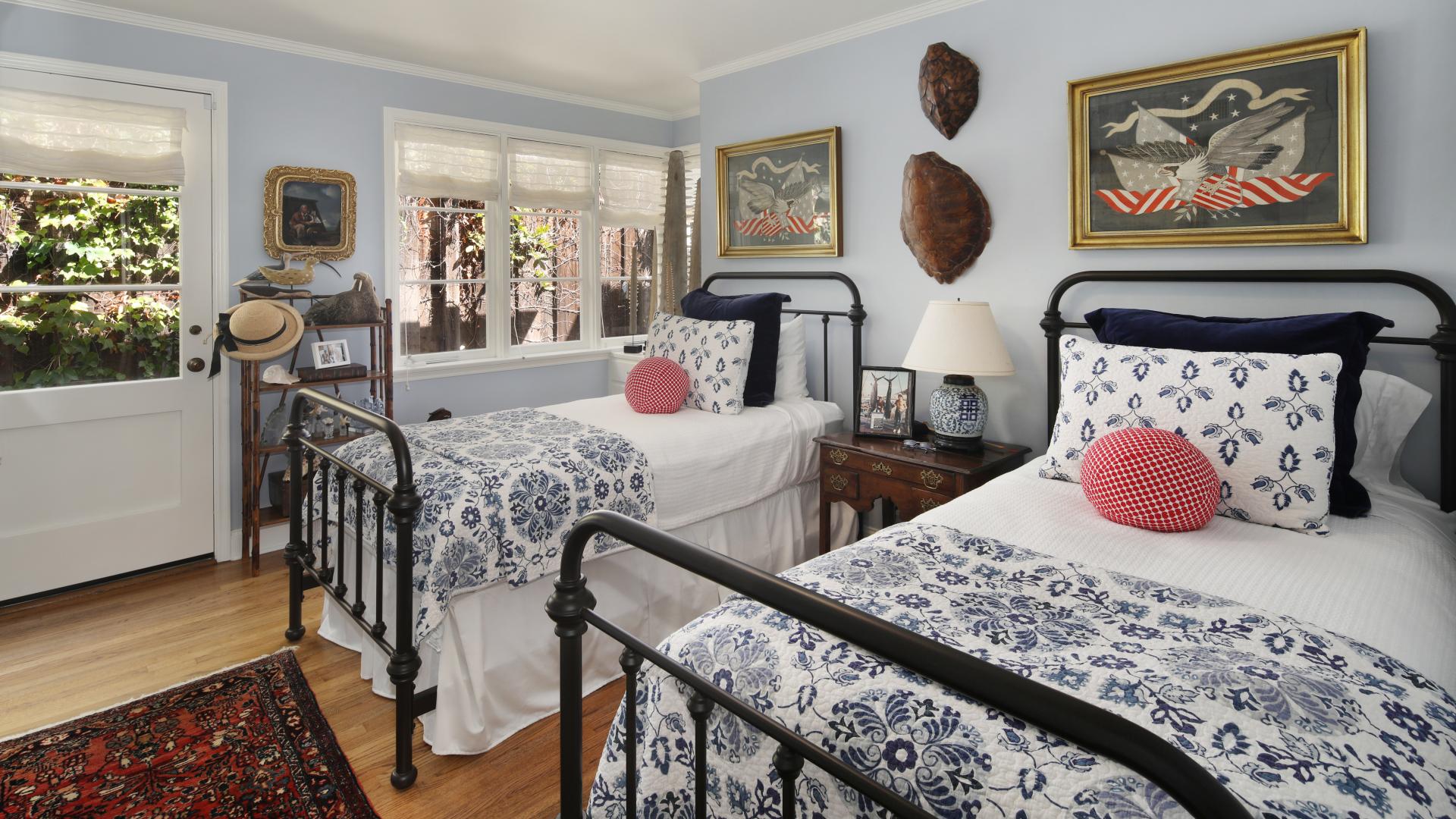 Обои Две большие кровати в спальне с большими окнами