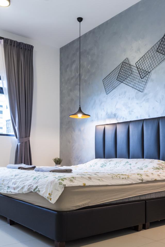 Обои Пустая спальная комната с большой кроватью у окна