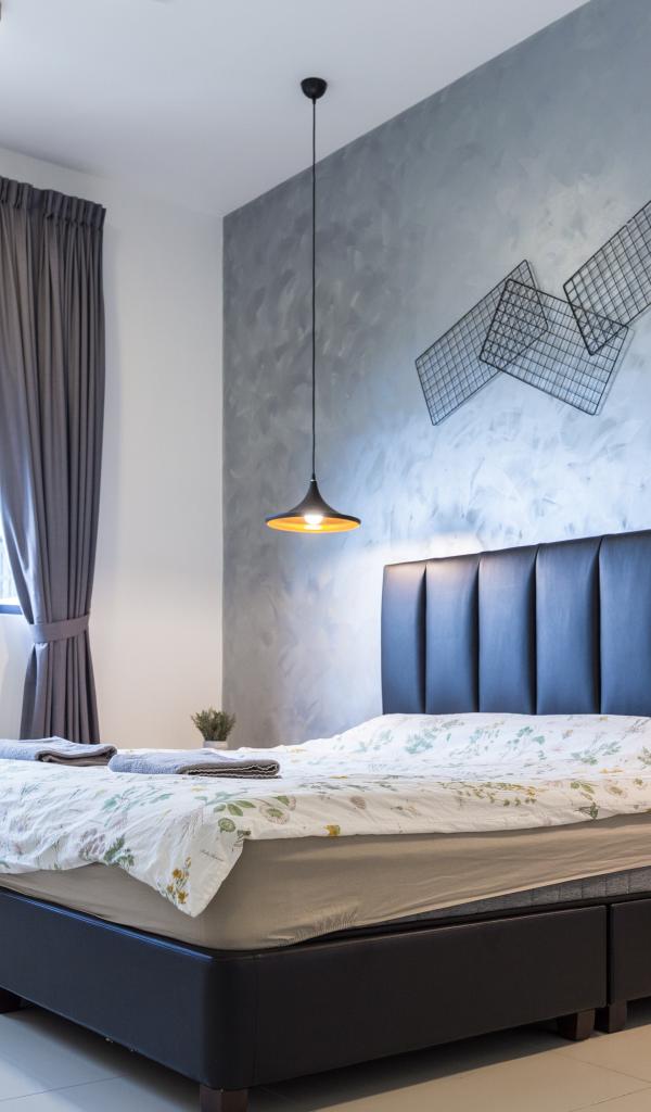 Обои Пустая спальная комната с большой кроватью у окна