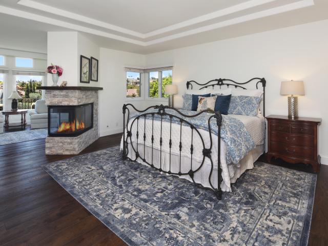 Обои Уютная спальная комната с камином и большой кроватью
