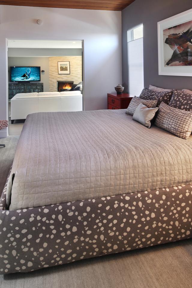 Обои Большая кровать в светлой спальне с камином
