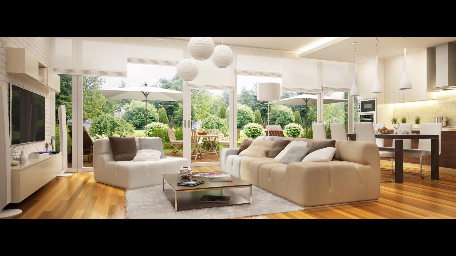 Обои Просторная столовая комната с большими окнами
