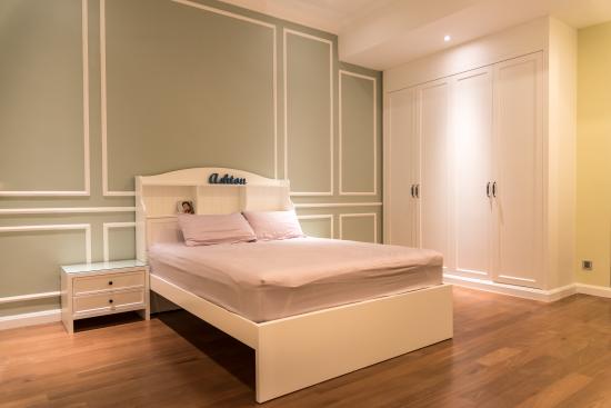 Обои Спальная комната с белой кроватью в стиле минимализм