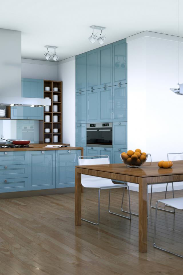 Обои Кухня в серых тонах с большим столом у окна