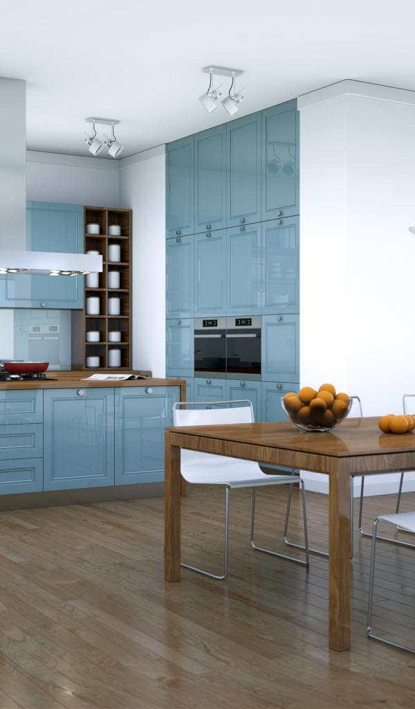 Обои Кухня в серых тонах с большим столом у окна