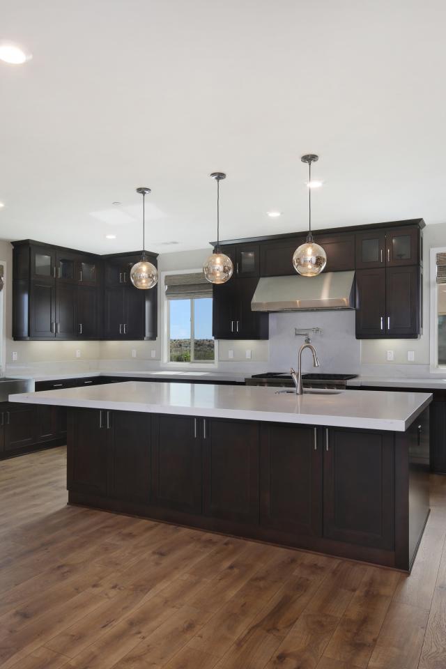 Обои Большая просторная кухня с мебелью в коричневых тонах