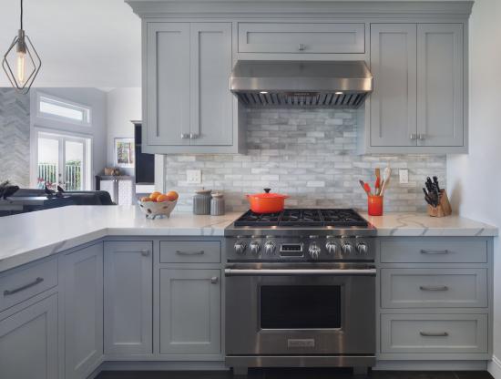» Обои Большая газовая плита в серой кухне