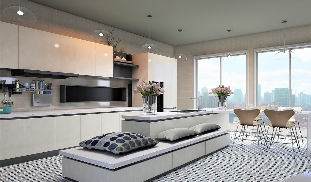 Обои Красивая просторная кухня в сером цвете