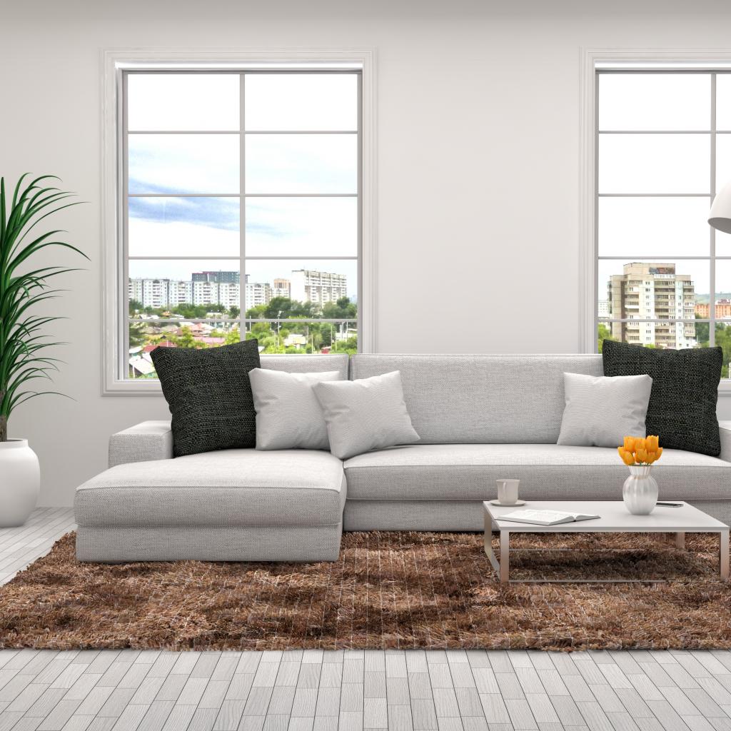 Обои Гостиная комната с большим диваном и окнами в сером цвете