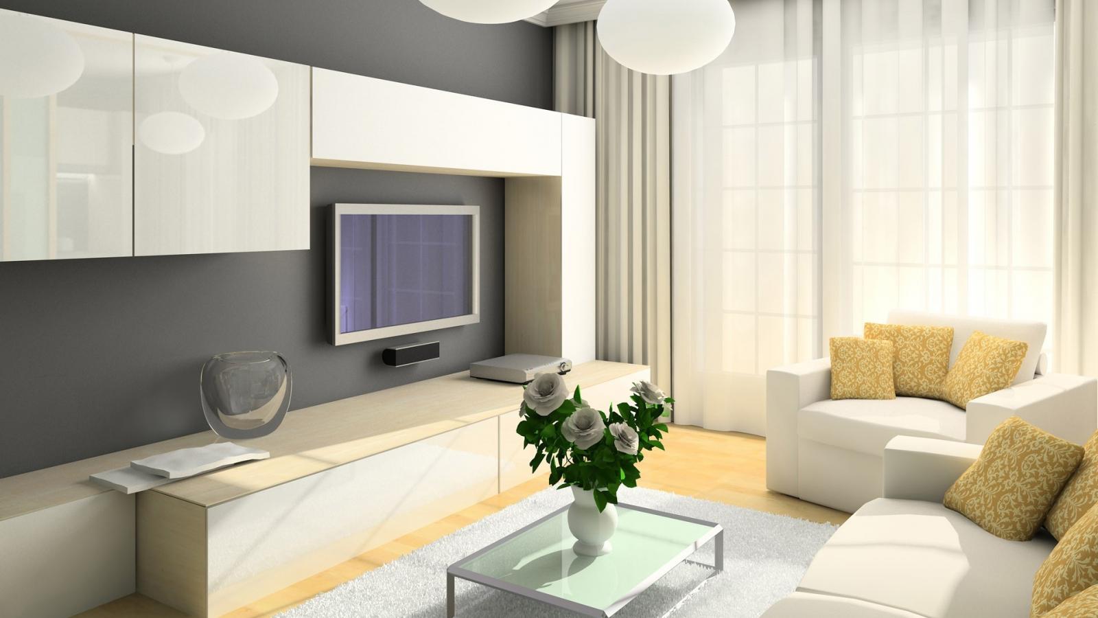 Обои Большая светлая гостиная комната с диваном и большим окном