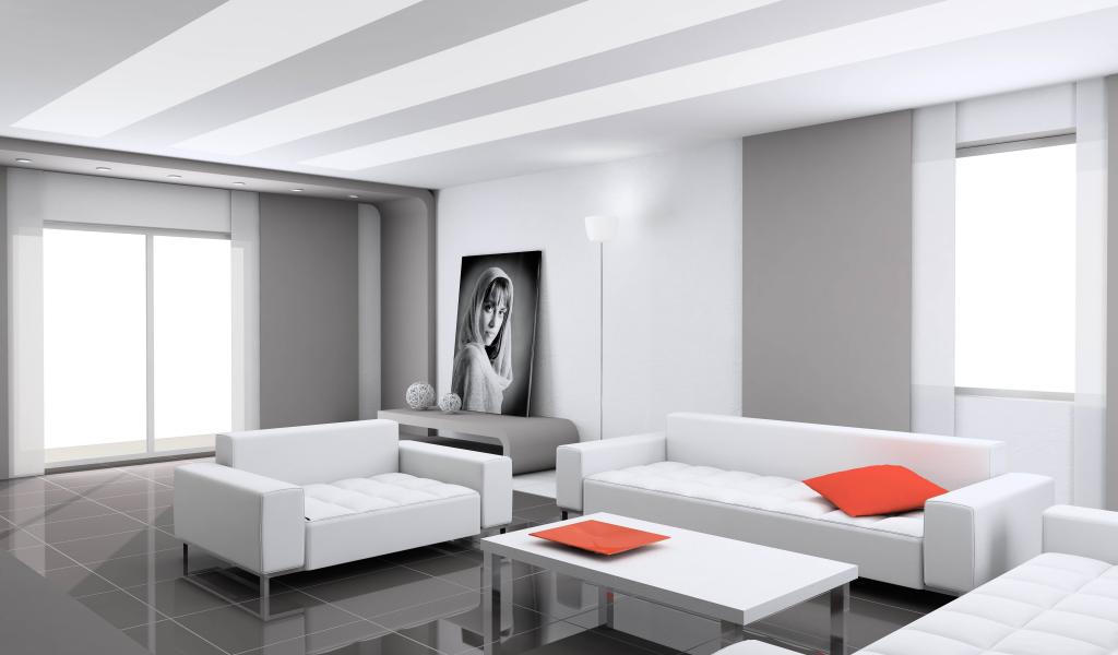 Обои Гостиная комната в сером цвете в стиле минимализм