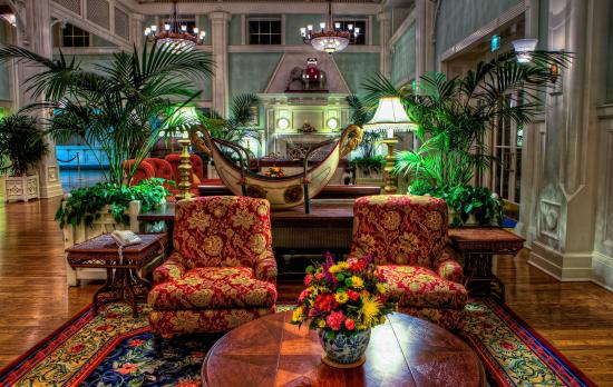 Обои Гостиная комната с винтажной мебелью и пальмами