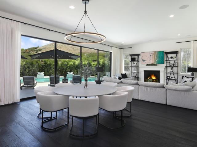 Обои Большой белый стол в комнате с диваном и камином