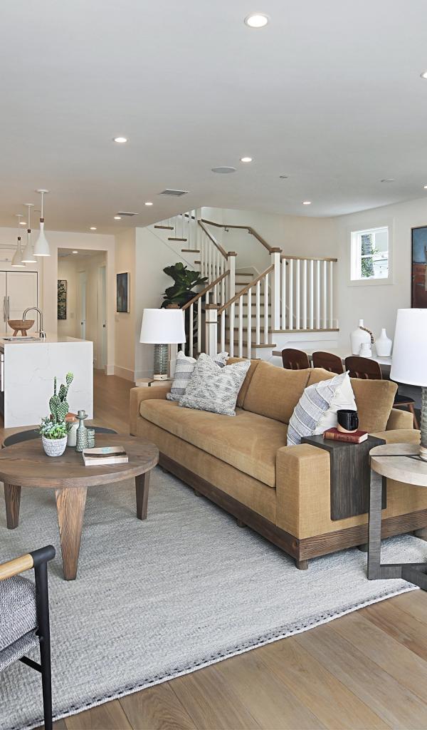 Обои Большая гостевая комната с мебелью и лестницей на второй этаж