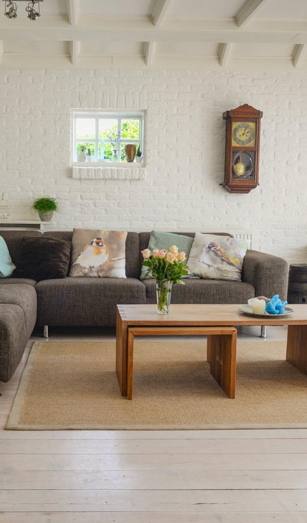 Обои Большой диван в гостиной комнате с цветами