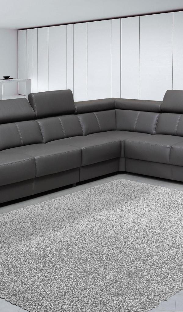 Обои Большой черный угловой диван в комнате с белыми стенами