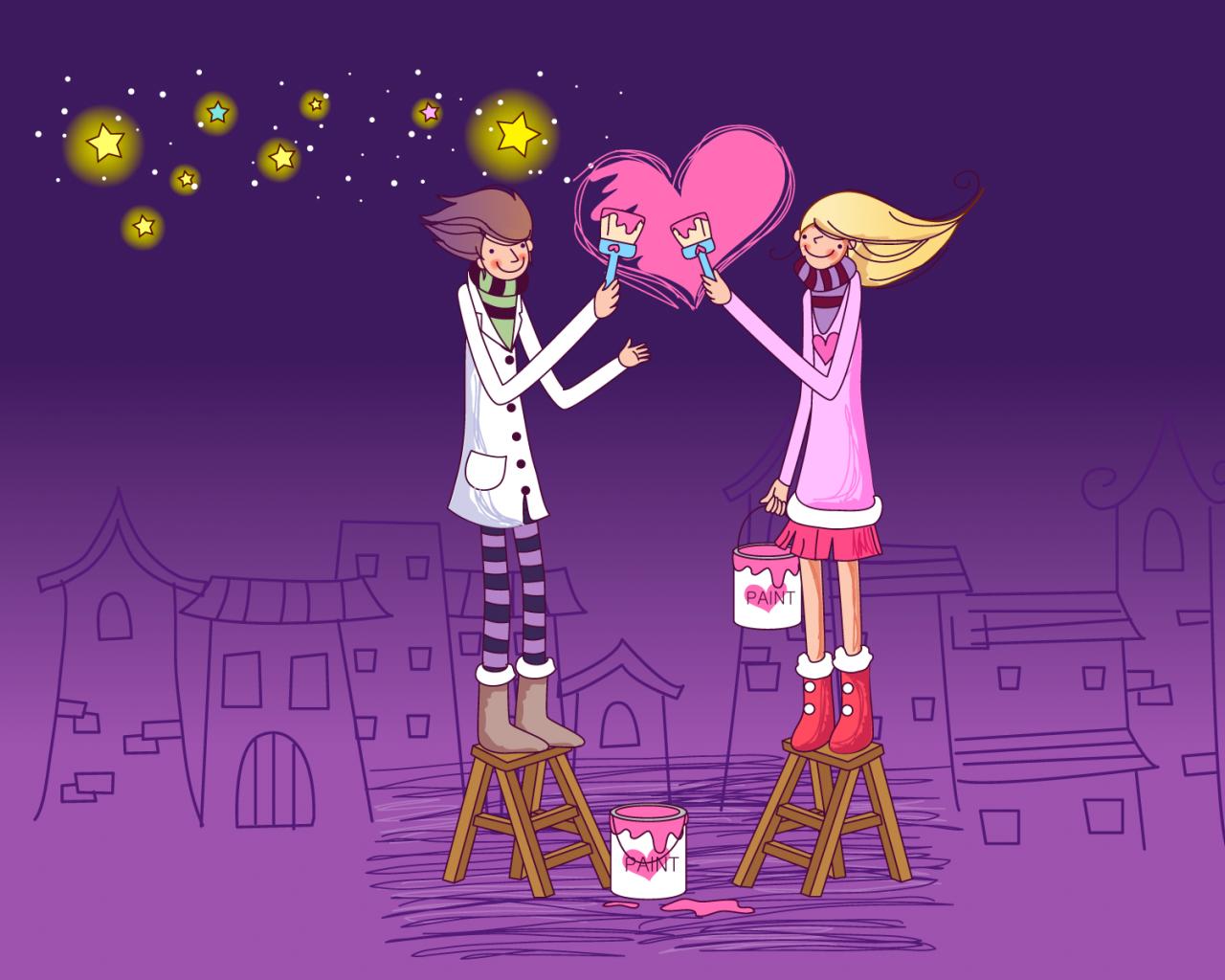 Обои Влюбленные рисуют любовь