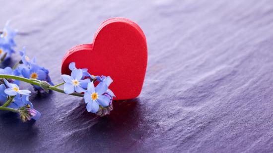 Обои Красное сердце и нежные голубые цветы