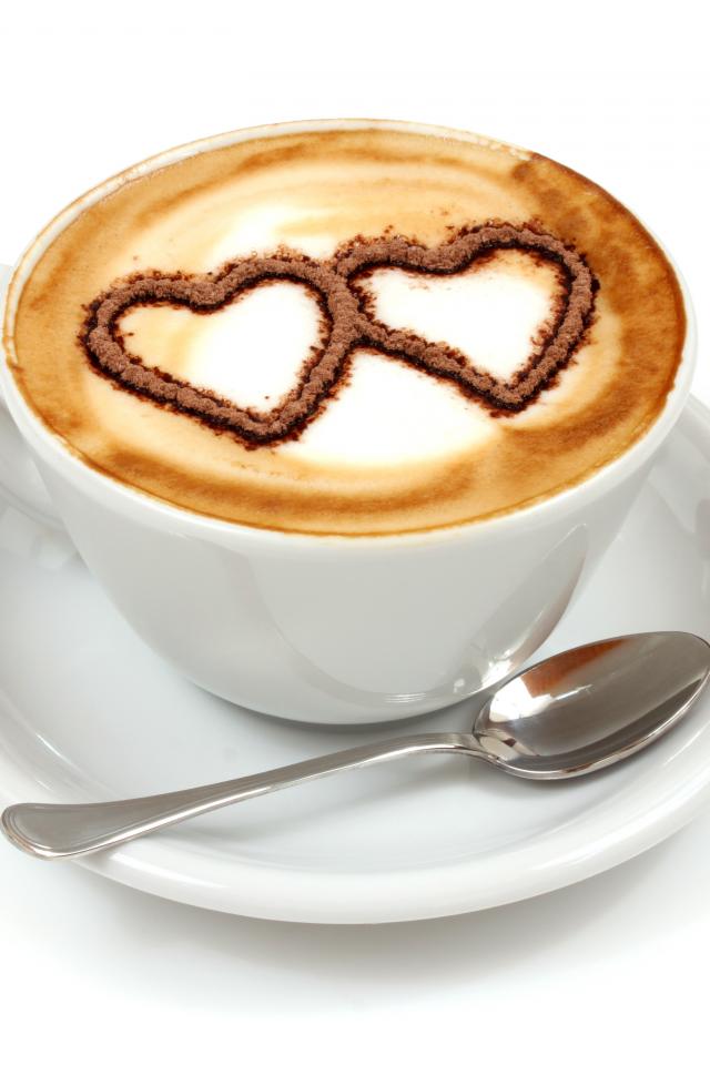 Обои Два сердца на пене в белой чашке
