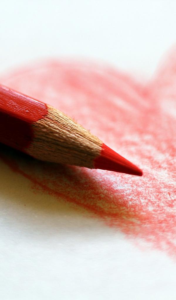 Обои Нарисованное карандашом красное сердце на бумаге